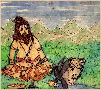 Deeply grateful to Shiva, he went to Mount Kailash to bow to his guru. But Ganesh, who was guarding the entrance of the palace, did not allow him to proceed. Ganesh told him to wait for the Shiva permission.